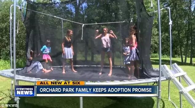 美国一个家庭最近多了4个新成员,成为了8人的超大组合,6个从小就是好朋友的小姑娘现在是好姐妹了。
