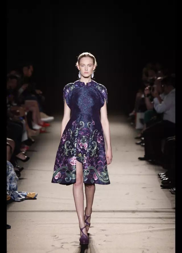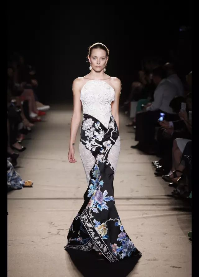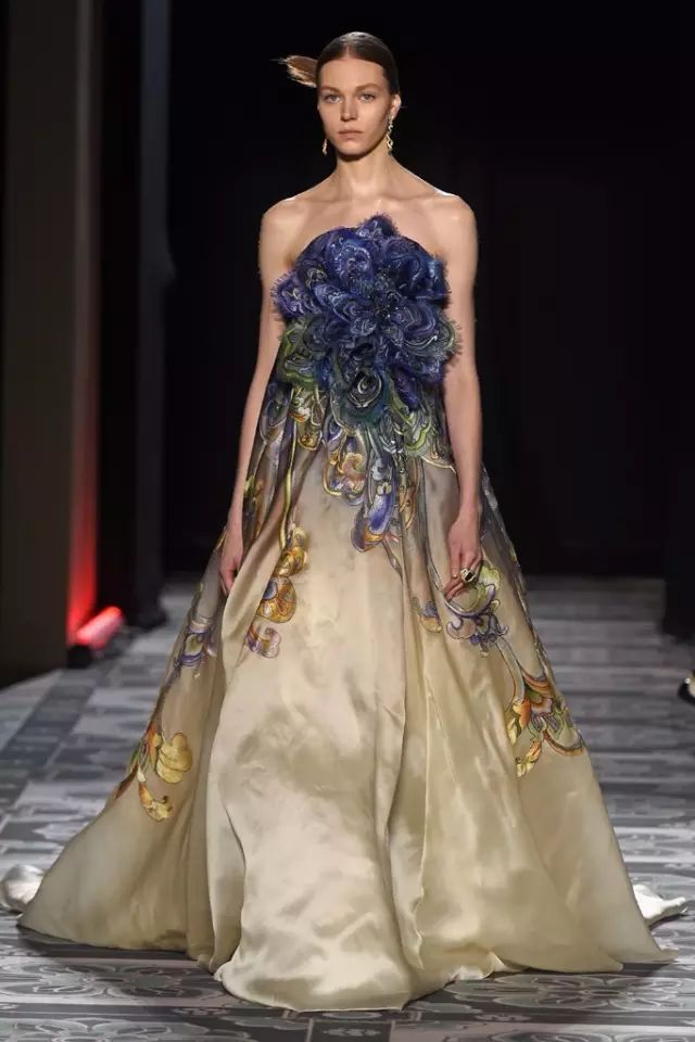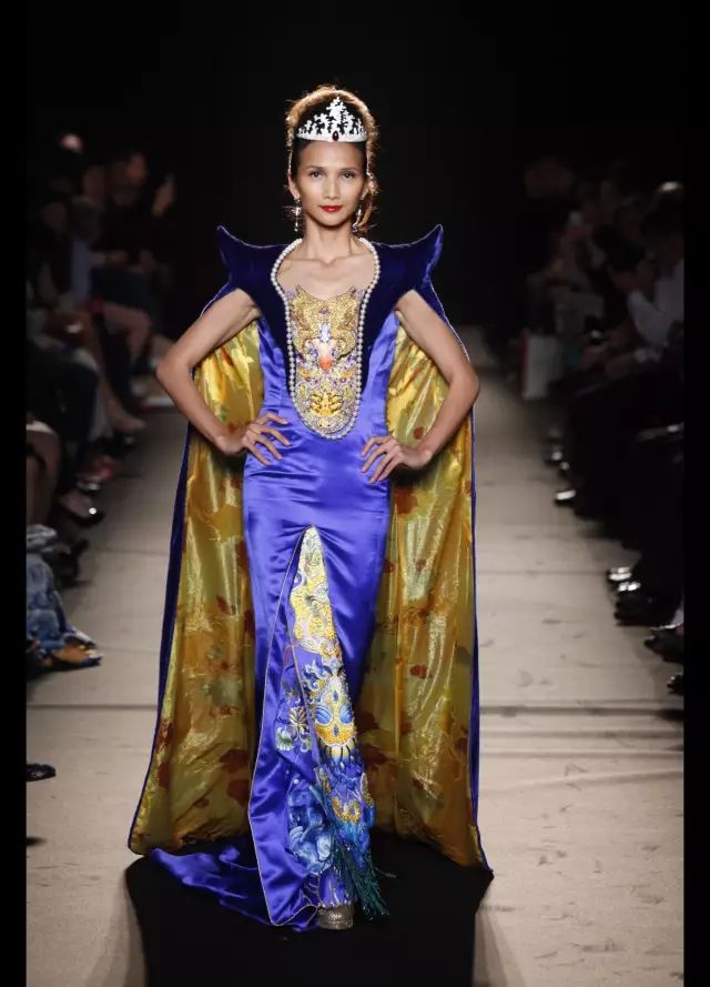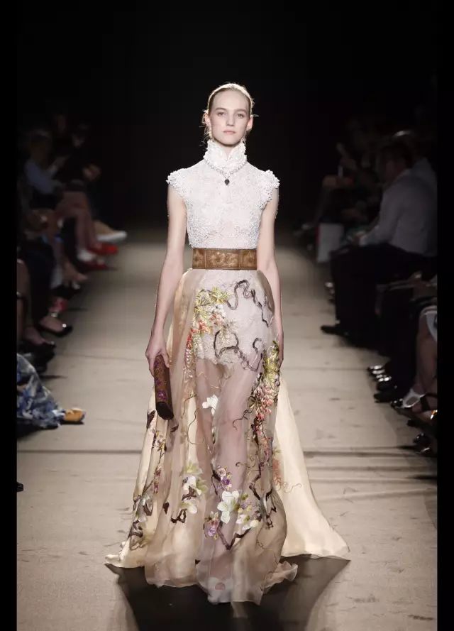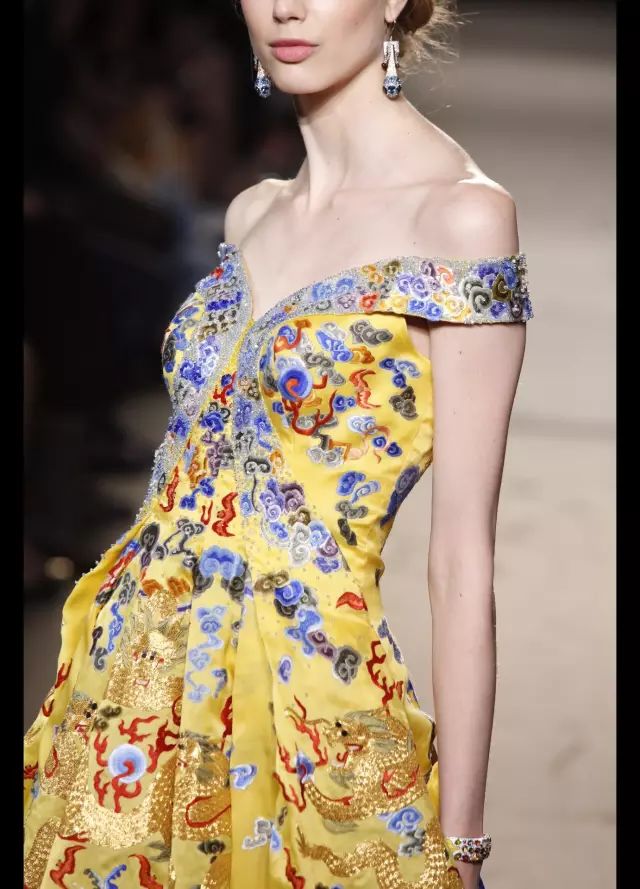 一件件华美的礼服让中国古代丝绸之路重要地标敦煌的盛景,重新焕发芳华于万里之外的时尚之都巴黎。劳伦斯·许以现代西方的立体裁剪配以古典东方的设计元素,完美地诠释了中西合璧,用时尚风把中国元素带向了世界。