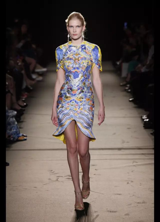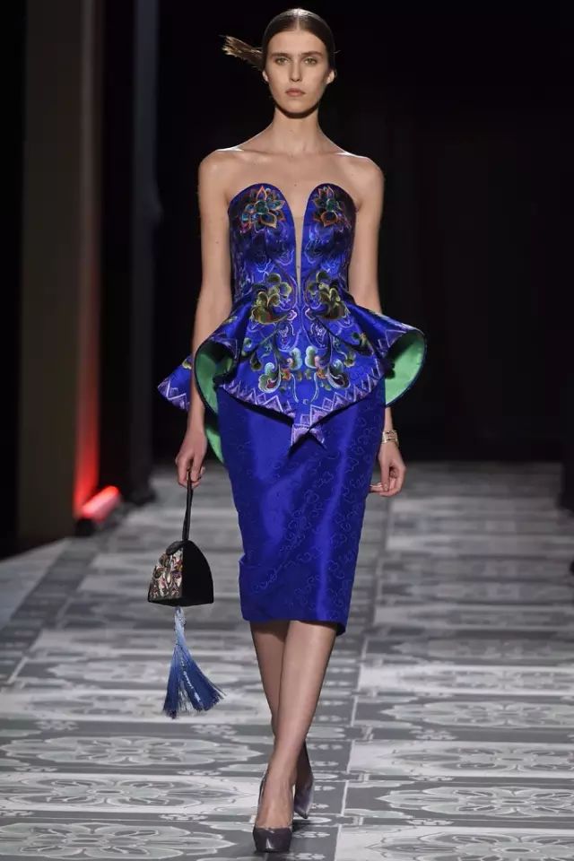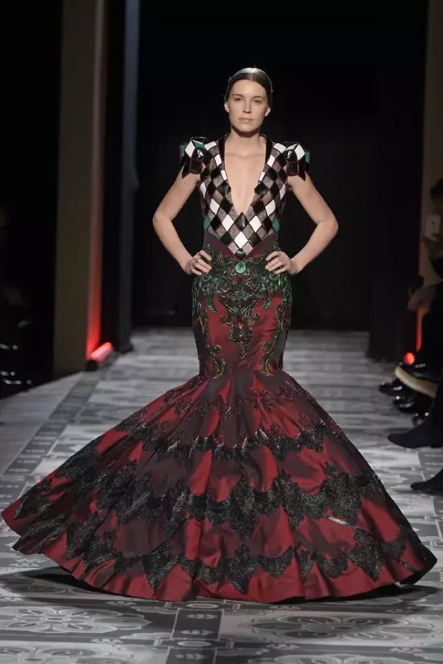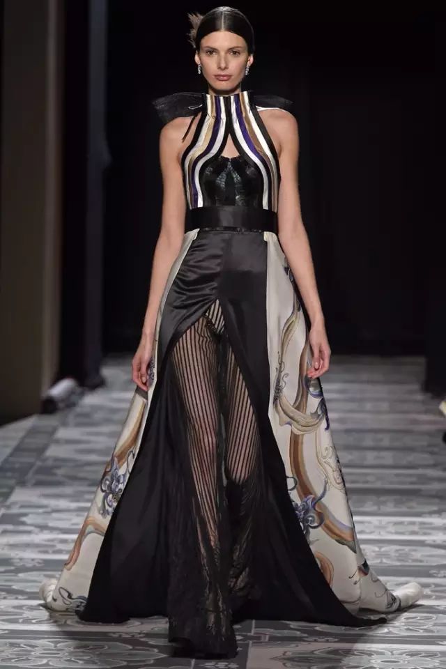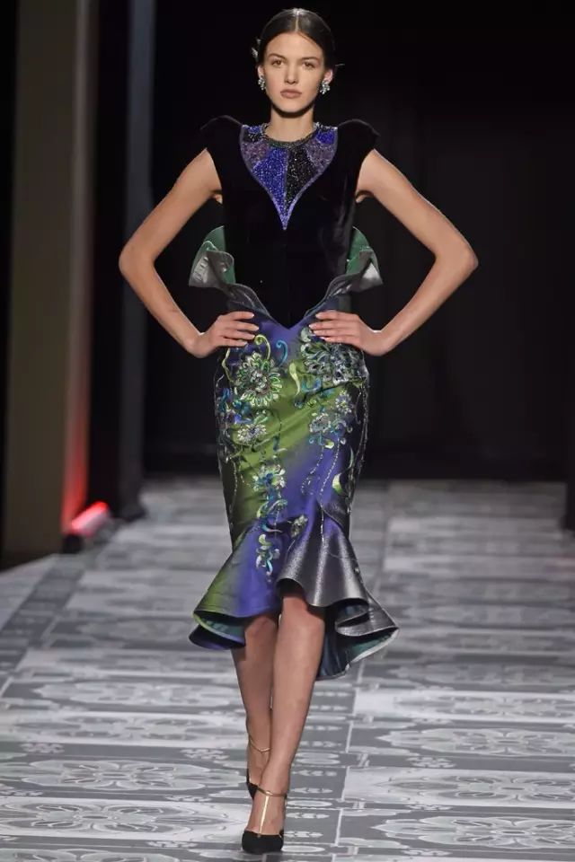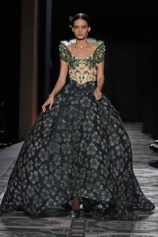一件件华美的礼服让中国古代丝绸之路重要地标敦煌的盛景,重新焕发芳华于万里之外的时尚之都巴黎。劳伦斯·许以现代西方的立体裁剪配以古典东方的设计元素,完美地诠释了中西合璧,用时尚风把中国元素带向了世界。