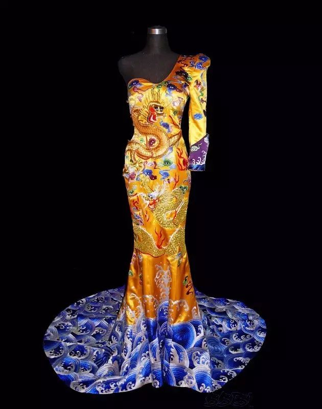 这件礼服随后被杜莎夫人蜡像馆收藏。而它的另一件“升级版”龙袍于2012年3月12日被世界最大的实用美术与设计博物馆——英国国立博物馆收藏。 对一个服装设计师而言,作品能够在英国国家级的博物馆中展出,这是一份不可多得的荣耀。