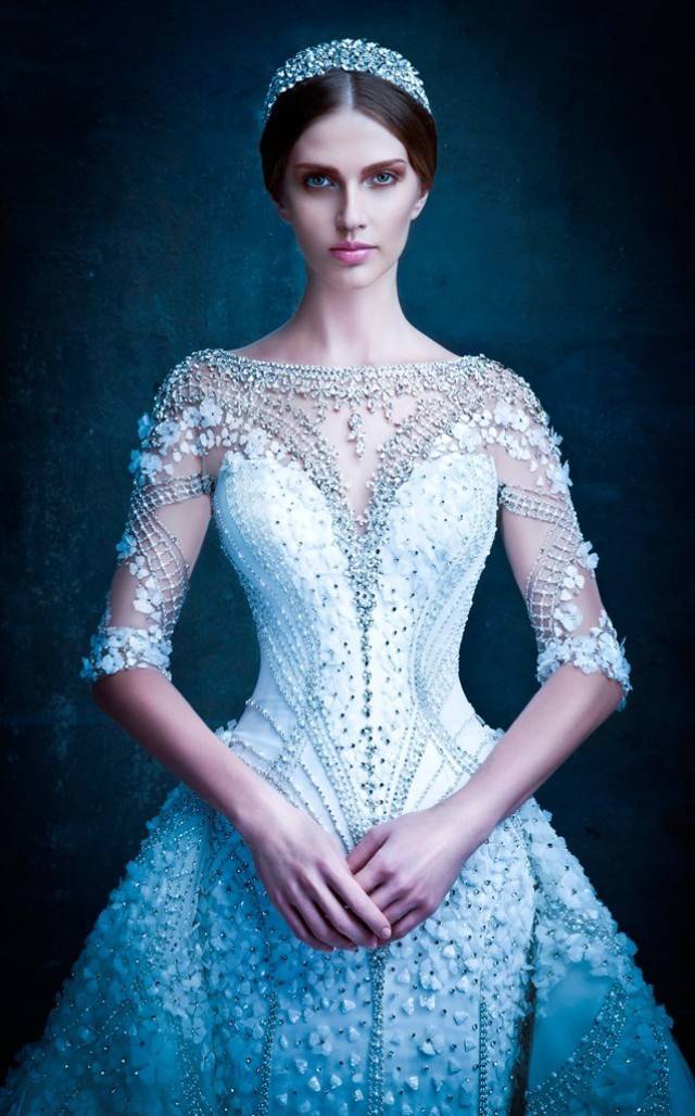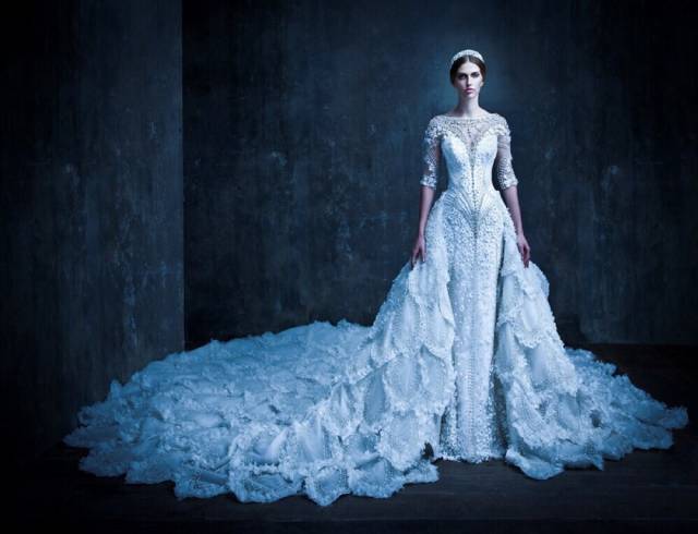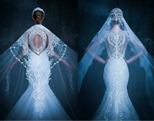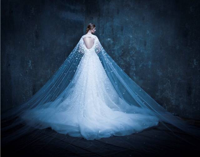 迪拜菲裔设计师Michael Cinco毕业于中央圣马丁艺术设计学院,他的婚纱作品深受阿拉伯皇室青睐。Michael Cinco婚纱结合华丽设计与精致细节,将新娘的高贵美态完美地勾勒出来。与众不同的细节设计与华丽巨型裙摆将新娘打造成城堡中的公主,散发出极致冷艳与华丽的光芒。Michael Cinco擅长浮夸的华丽的魔幻风格,夸张的裙摆和精雕细琢的背部装饰是其特色所在,真的是美到爆!