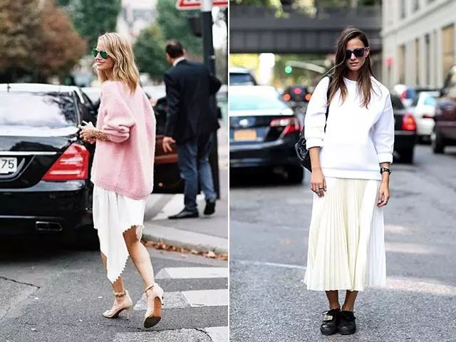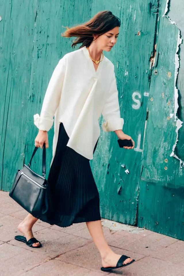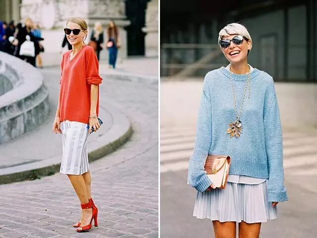 今年,前短后长的设计也特别流行,在很多T型台和电影节上,都可以看到女星们身着前短后长的服饰,因为它不仅时尚,且能遮盖不同身材的比例。百褶裙搭配一款前短后长的宽松上衣,你造有多Chic了么?