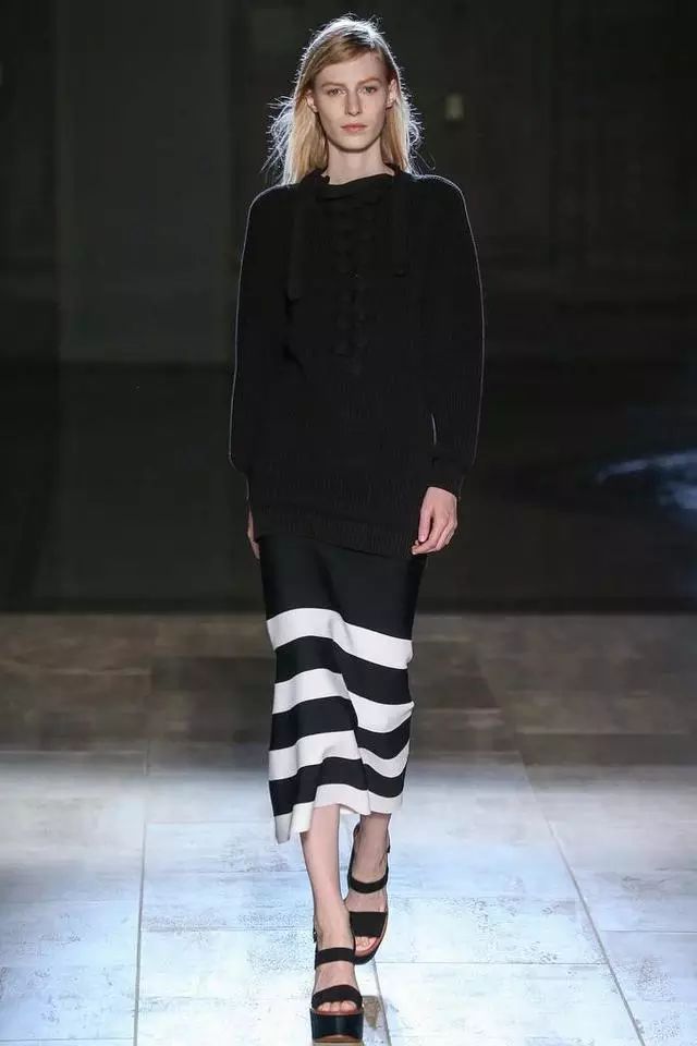 秀场模特是这么搭配的,用横条纹来突出特色。