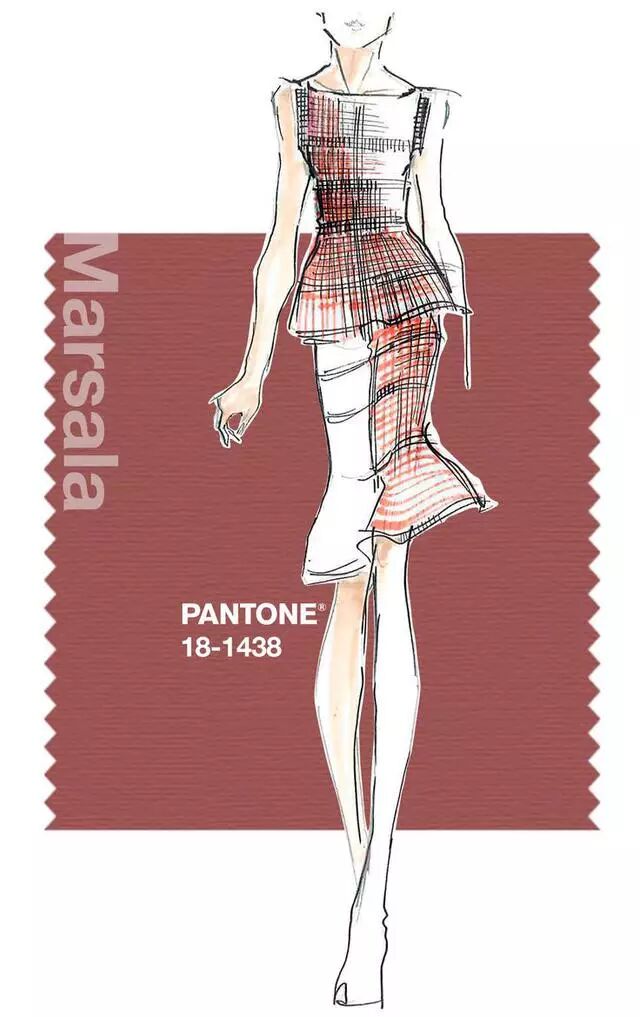 2015春夏的基调色之一,Marsala命名意大利的一种酒,如同红酒一样温暖而饱满,而其棕红色的底色则带出大地的沉稳,与其他颜色达到了平衡搭配。