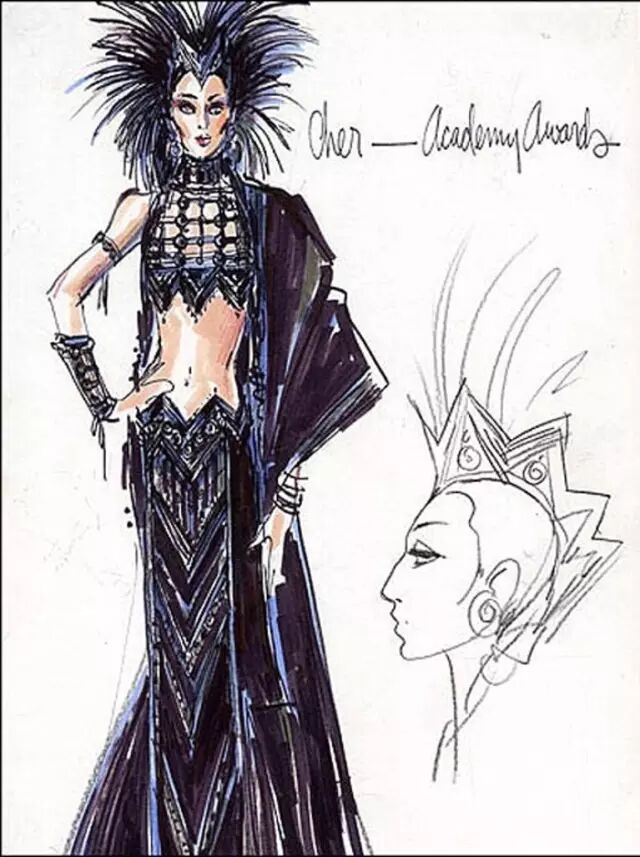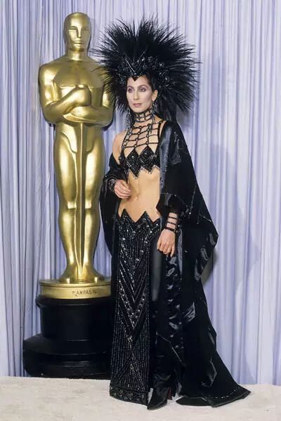 这件相当暴露的裙子由著名戏服设计师Bob Mackie亲手为Cher设计,夸张的设计和头饰令整个奥斯卡都记住了这位天后,而当时她只是去颁奖而已。