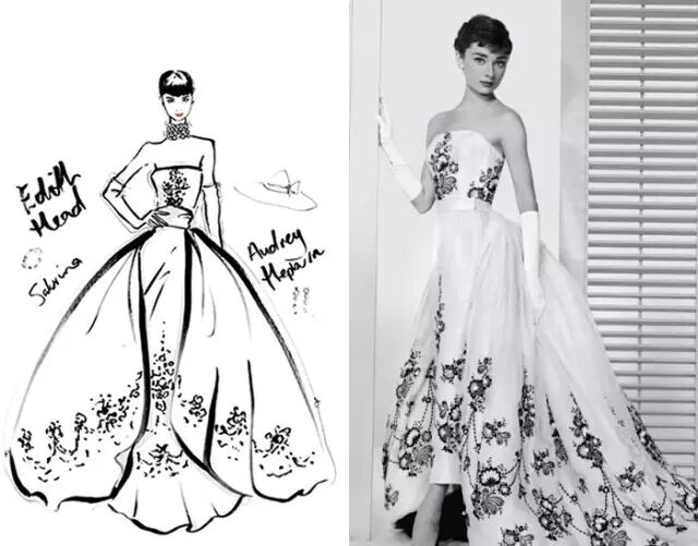 这条裙子可以说是将赫本送上好莱坞时尚女皇宝座的功臣。在拍摄《龙凤配》之前,赫本跟设计师纪梵希(Givenchy)还没有开始合作。当这部电影开始拍摄的时候,她请求纪梵希给她设计戏服,分身乏术的纪梵希只好给她挑了几条品牌的旧衣服,这条“Sabrina裙”就是其中的一条。