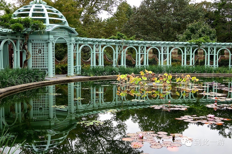 这栋华厦建于1906年,原屋主是上世纪初华尔街大亨,占地100英亩。它是典型的英式庄园,有70个房间,现对外开放参观,家具陈设仍保持英式古风。这里当然也常常举办活动,有个玫瑰花园,还有一个很美的荷花池塘,摄影自拍两相宜!