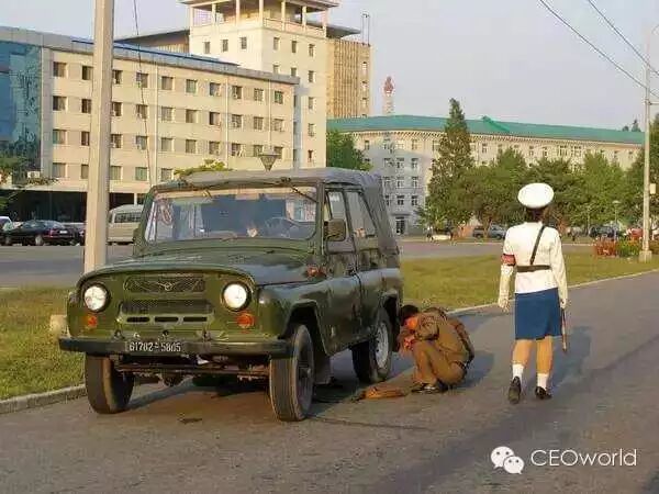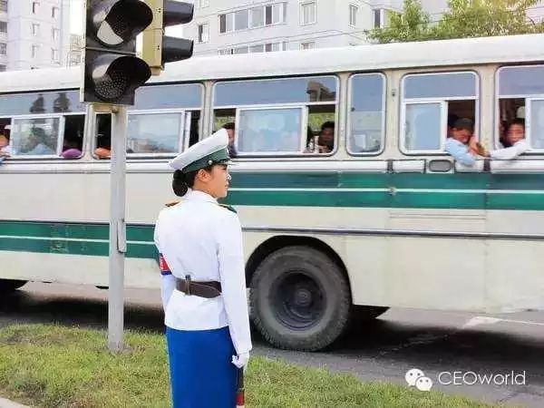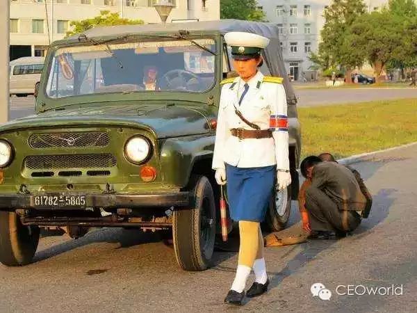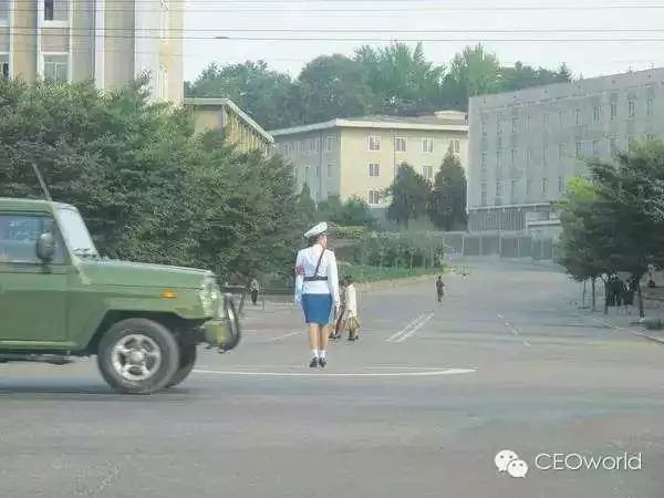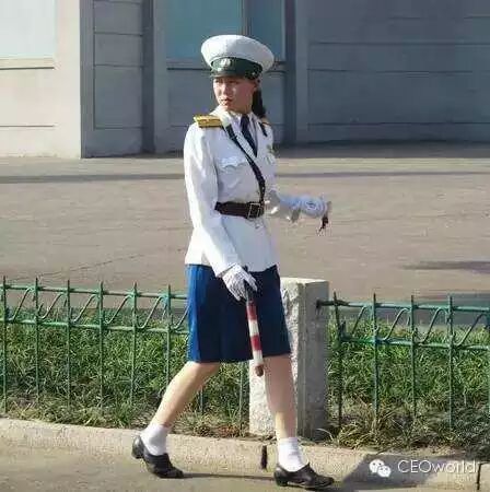 女交警是令朝鲜MM神往的职业,据说待遇很好,社会地位高,引得无数细嫩的女孩儿都去站大街了,每天早8点上班到晚10点下班,真的要站在路中间指挥,动作标准,风吹雨淋日晒,非常辛苦!