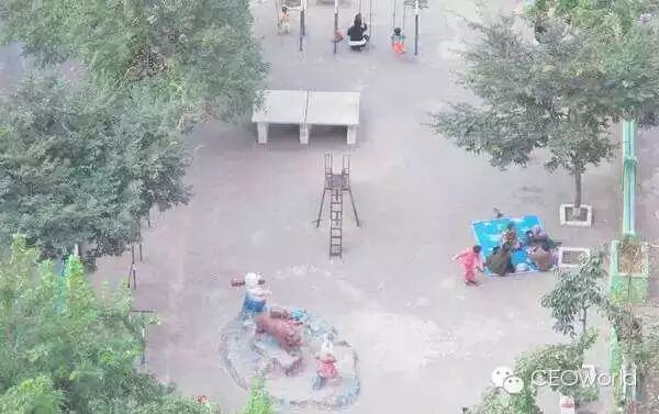 我在房间闲来无事,拍了几张旁边小区花园的照片,有荡秋千的孩子,有席地而坐谈笑风生的老人,平淡和谐。
