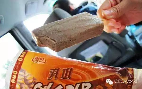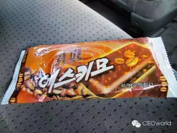 貌似咖啡巧克力脆皮,实则只有甜味的雪糕状,价格400朝币,这是叔叔冒着当特务被扣下的危险买来的,我格外的珍惜!