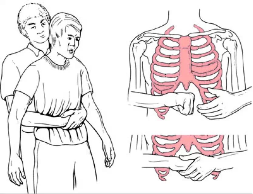 海姆立克急救法的原理:利用冲击腹部--膈肌下软组织,被突然的冲击,产生向上的压力,压迫两肺下部,从而驱使肺部残留空气形成一股气流。这股带有冲击性、方向性的长驱直入于气管的气流,就能将堵住气管、喉部的食物硬块等异物驱除,使人获救。