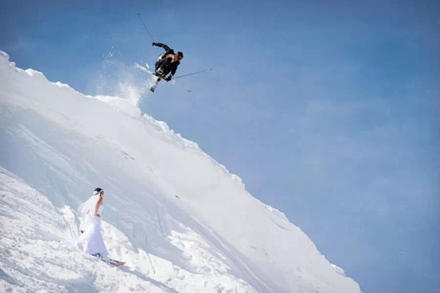 用爱融化了雪的冰冷,和你一同体验滑雪的速度和刺激,正如今后的生活,不甘平淡,想和你享尽世间纷繁。让雪做纱,让我们的婚礼和雪山和雪道融为一体,尽享这白色童话般的浪漫婚礼。