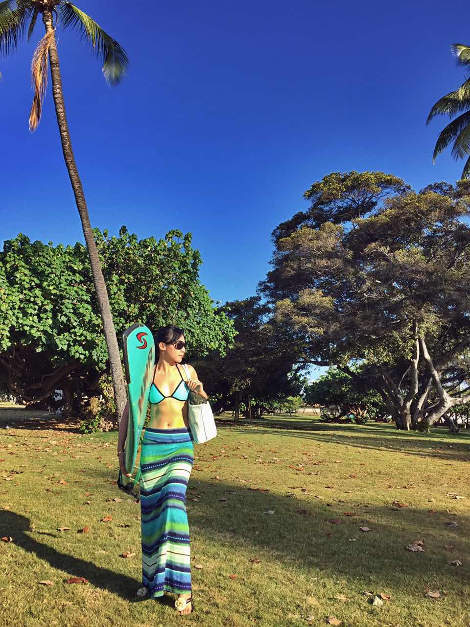 Vivienne:我应该是五行缺板儿,见到板儿就喜欢,滑雪板冲浪板滑板,还有gym的地板,最喜欢滑雪和冲浪。