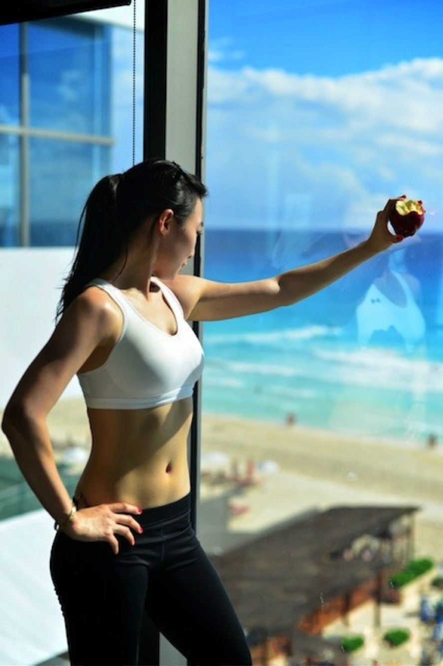 Vivienne:先说“管住嘴”。三分练,七分吃,吃对能否见到腹肌尤为重要。减脂的核心是创造每天摄取热量的缺口:通俗说就是每天消耗的热量要大于摄取的热量。很多人觉得去了gym后就可以大吃特吃,这是大忌。一般人慢跑半小时,热量还不及一听可乐。理想是唯美滴,现实是残酷滴,管住嘴是见到腹肌的开始。