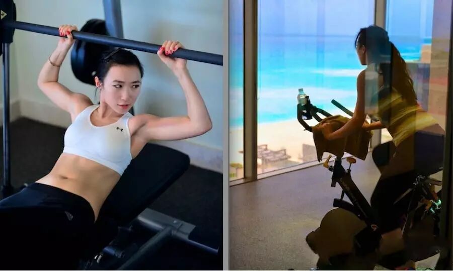Vivienne:夏天的surfing season和冬天的snow season,每周平均滑雪和冲浪两天,去gym四天。 Between seasons每周去gym五次,保持体力状态。 Weekday只能晚上下班去gym,每次在1小时左右,通常热身5到10分钟,高强度力量训练40分钟,有氧15分左右(跑sprints 5组或rowing 2000米),最后拉伸。 Weekend不出去冲浪滑雪的话,早上8点到10点在gym。