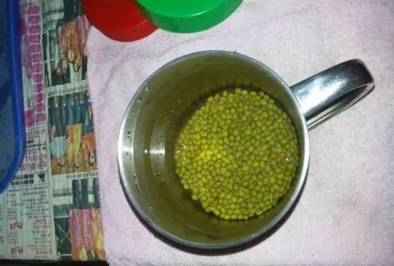 挑选过后的绿豆用水泡 8个小时。(一般泡一夜正好)