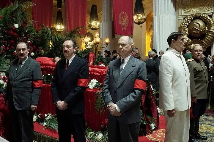 第一部是《斯大林之死》(The Death of Stalin)。关于斯大林的死一直有阴谋论,官方说是中风导致的自然死亡,但也有人坚信他是被投毒。不管怎么样,斯大林死后,苏联群龙无首,高层人物纷纷粉墨登场,磨刀霍霍,抢夺最高权力,最后赫鲁晓夫等人扳倒了情报头子贝利亚,大获全胜。这部电影就是对那段历史的漫画呈现。