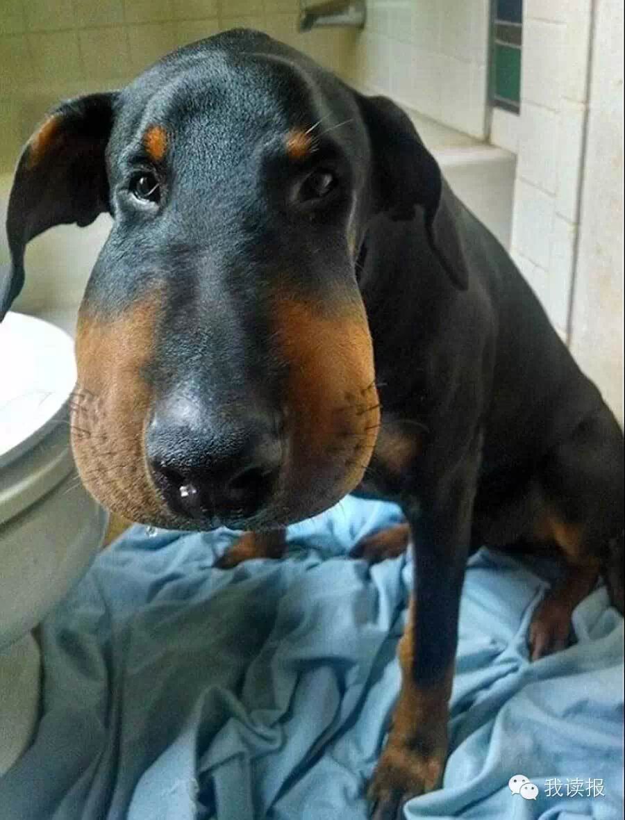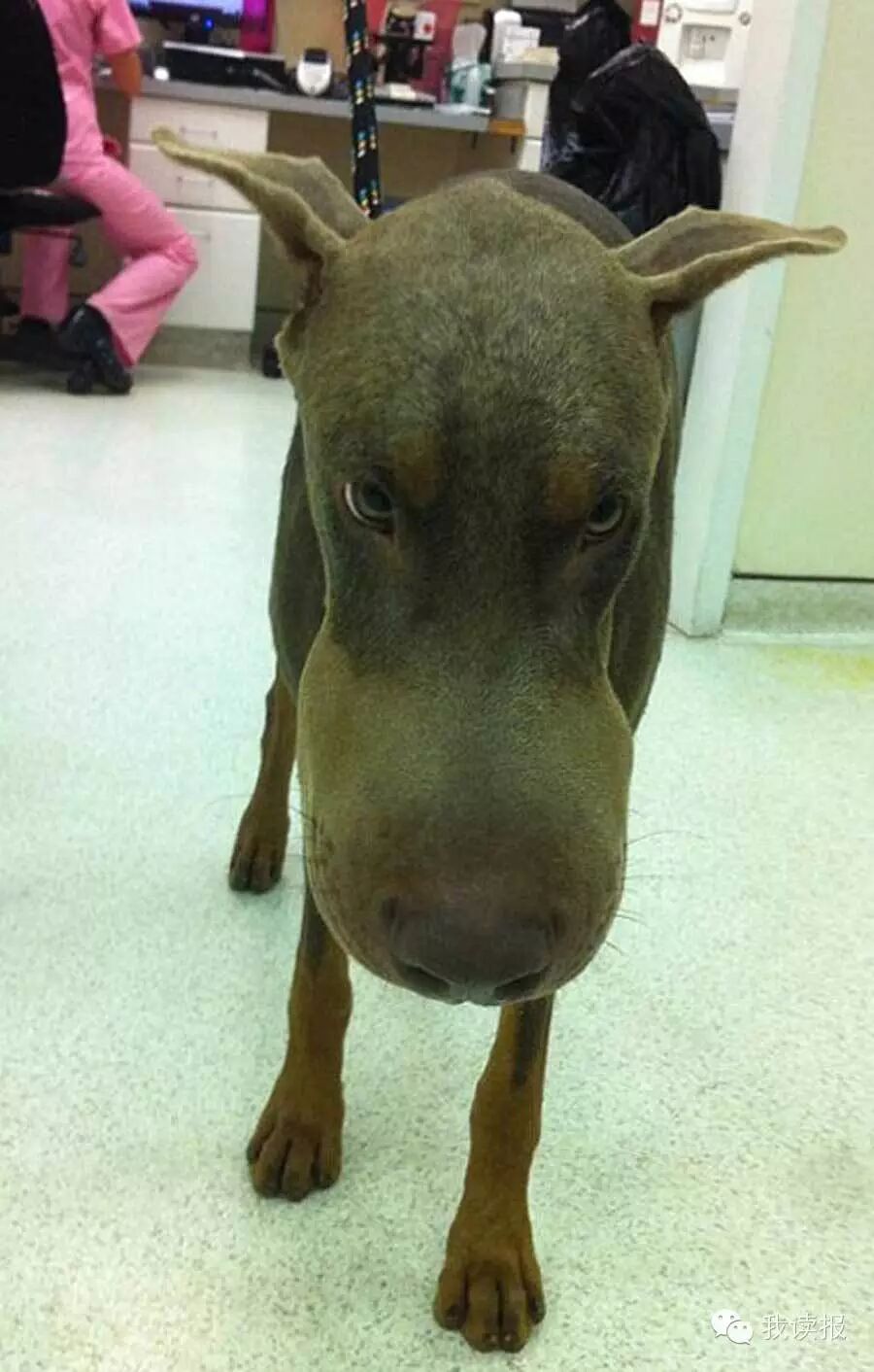 这只狗狗似乎感到非常羞愧,只想低着头,在其他人注意到它之前离开兽医诊所。它已经知道,这张照片可能成为它心中永远的痛。