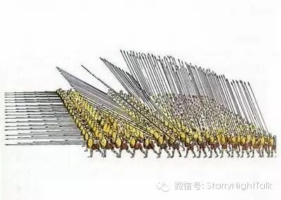腓力二世在15岁的时候,曾经被送到底比斯作为人质,当人质期间,他对底比斯的军队有了很深的了解,至于是不是和圣团战士有过更深入的交流,这个邪恶问题的答案就不得而知了。腓力二世回国继位后,改革军队,发明了马其顿方阵,在人类几千年的冷兵器时代,马其顿方阵的正面冲击力毫无疑问是排第一的。这整个就是一头张开所有刺的大豪猪,在慢慢向前拱动。后世亚历山大也是依靠马其顿方阵一直打到印度,征服了当时西方所知的所有文明世界。