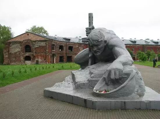 布列斯特要塞的纪念雕塑,名字就叫《渴》。每个夜晚都不知有多少士兵冲到河边,努力想为战友带些水回去,但是他们中的绝大多数都被守株待兔的德军射杀。