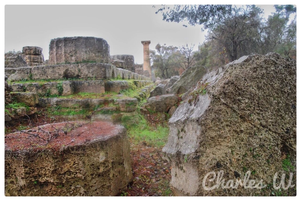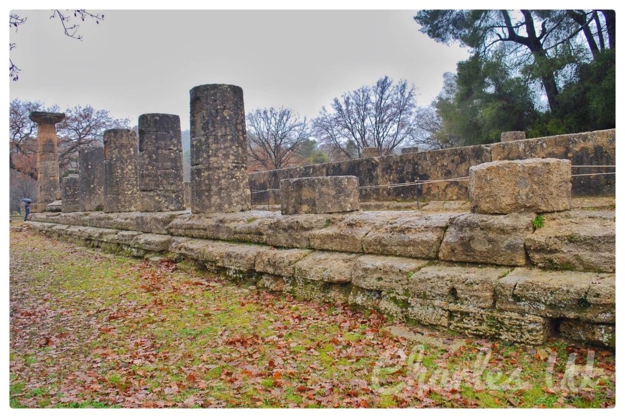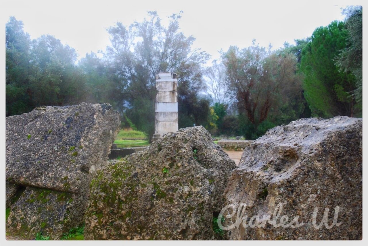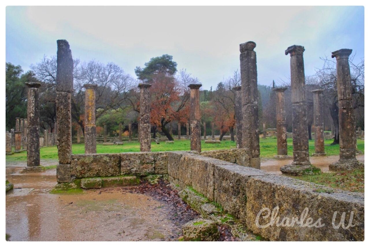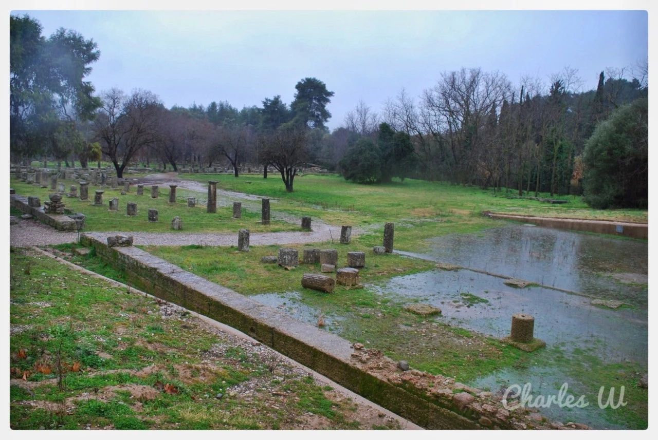 从迈锡尼继续往西北开,便进入小城奥林匹亚。休息一晚后,一大早便去参观奥林匹克遗址及奥林匹亚考古博物馆。不凑巧下起了小雨。