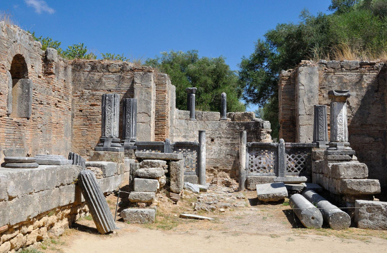 奥林匹亚Altis的Philippeion是一个石灰石和大理石的圆形纪念碑,其中包含菲利普家族的雕像: 他本人,亚历山大大帝,奥林匹亚,Amyntas III和Eurydice I. 它是由雅典雕塑家Leochares为庆祝菲利普在Chaeronea(公元前338年)战役中的胜利而制作的。这是Altis内部唯一一个致力于人类的(而非神)的建筑。