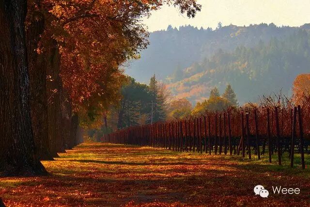 Napa 谷无疑在美国都享有较高的知名度,作为葡萄酒乡,秋天意味着收获的季节,当酒庄开始采摘今年的葡萄,葡萄叶子也从鲜嫩的绿色变成了醉人的红色。沿着著名的Silverado Trail驾车游,你会路经一座接一座的葡萄酒庄,一行一行的葡萄藤泛着深紫色和金色的光晕。如果你觉得不过瘾,你还可以乘坐热气球,从上往下把整个整座山谷的红叶抱在怀中。也可以到酒庄下车漫步,一手触摸随风乱舞的红叶,另一只手端着珍藏的红酒,晚上还可在酒庄住一晚。傍晚推开窗,夕阳下漫山红叶把酒庄浸没在红色之中.