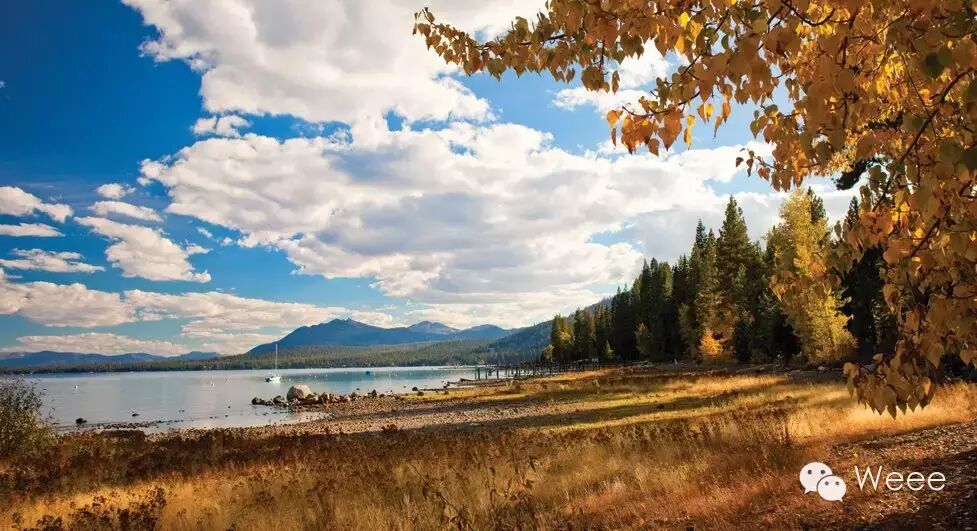 加州与内华达州一个高山湖叫太浩湖(lake tahoe),湖旁有一条蜿蜓于山间的曲曲弯弯的50号公路。沿着50号公路向西一路走去,竟让人无法相信这就是素以荒芜著称的美国西部风光!在太浩湖位于加州这一侧的南段水域,目前正是红叶漫山的好时候。根据往年经验,入秋之后Lake Tahoe赏客众多,距离Lake Tahoe最南端不到2mile的Fallen Leaf Lake就成为了避开人群的不错选择。