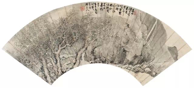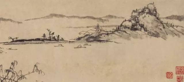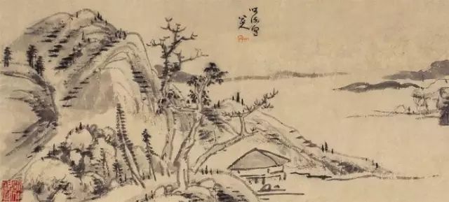 清 髡残 山水图 册页 纸本 水墨 设色 纵37.5厘米 横76.2厘米 台北故宫博物院藏