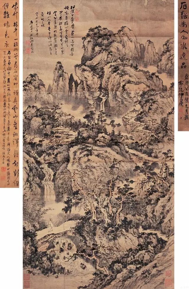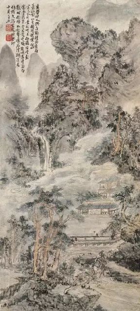 清 髡残 结社林泉图 立轴 纸本 水墨 淡设色 纵120.1厘米 横61.4厘米 (日)泉屋博古馆藏
