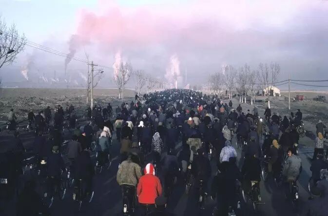 1980?内蒙古包头?早晨前往包头钢铁厂的大潮