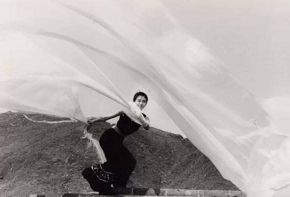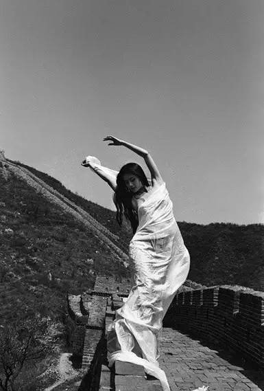 1992年的春天,杨丽萍裹着巨大的布站在长城的烽火台上,飘飘若仙。