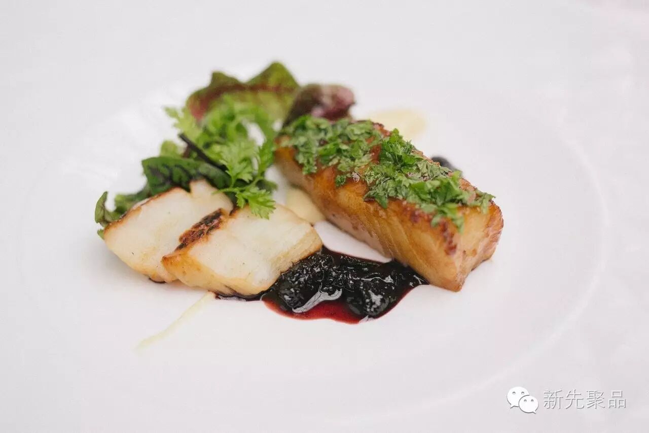 腌黑鳕鱼和扇贝,芥末巴罗洛酱汁