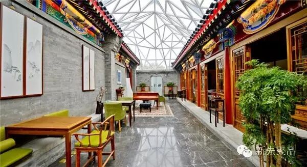 前院特别装配智能布朗新风系统,造价300多万打造如同大英博物馆的全透明玻璃屋顶,隔绝污染还不妨碍你欣赏如梦夜景。细节角落的家具也都是昂贵古董,古风和现代的完美结合。当然如此奢华幽静的古风古韵,更适合我们享用最地道的法餐。