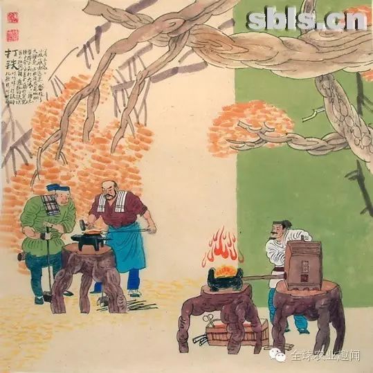 铁匠身板好,手艺巧,干活的姿态也好看,乒乒乓乓一阵,一件件精美的铁器便告完成了,放进冷水里一激,坚硬无比。有的铁匠还在铁件上打上自己的印记,这活儿便更叫绝了。歌谣曰:叮叮当、叮叮当、打铁的匠人拉风箱,通红的铁块锤子夯,火星子一迸明晃晃,犁铧子一晌打六张,马掌子一晌打一箱。小锤点,大锤夯,噗哧一个火星子,烧了大姐的花衣裳。