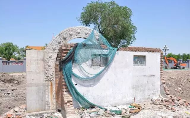 2010年,残存的清真寺遗址也被拆除。下图是拆除时的照片,可以清楚地看到雕刻有「不断莲」的皇家寺庙卷拱石。