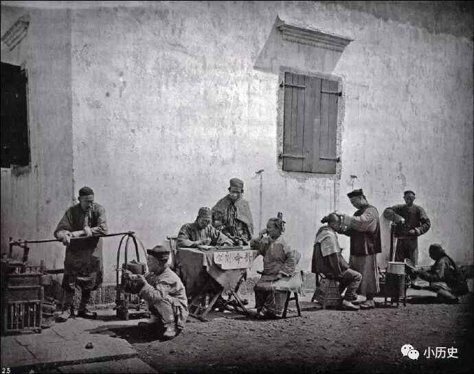 江西九江街头,有卖小吃的、剃头的、算命的、补盆的。