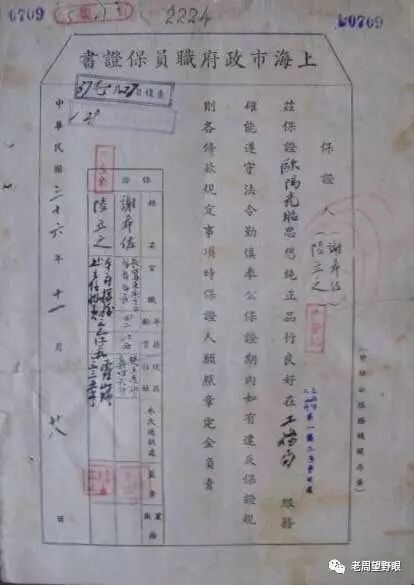 上海市政府职员保证书:保证思想纯正、品行良好……遵守法令、勤慎奉公……