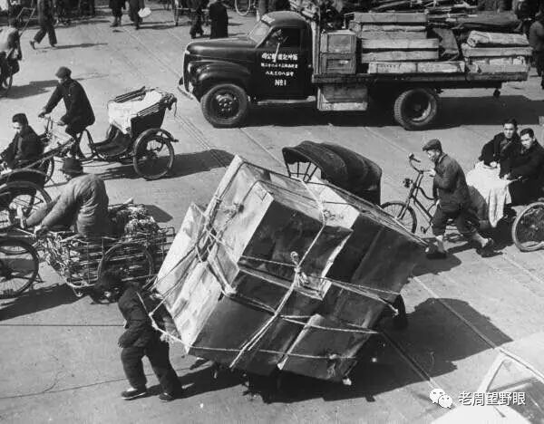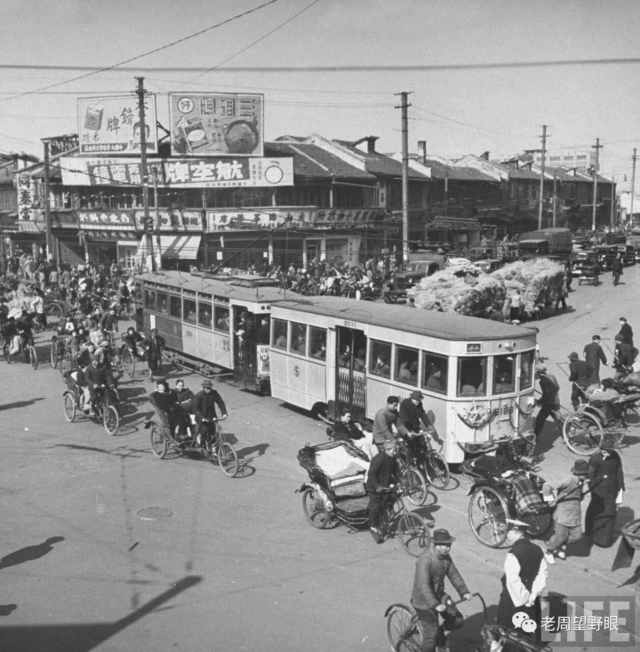 汽车、三轮车、黄包车、人力车、行人……
