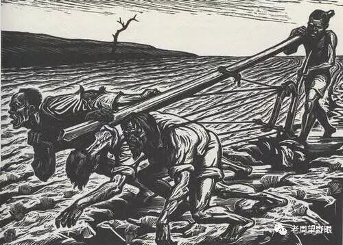 李桦的版画《挣扎·怒潮》
