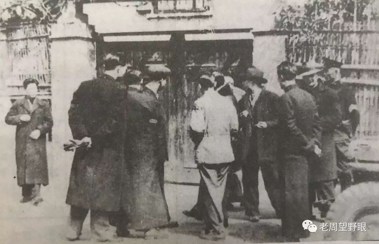 中共驻上海联络处被迫撤回延安,图为周公馆门前的国民党特务