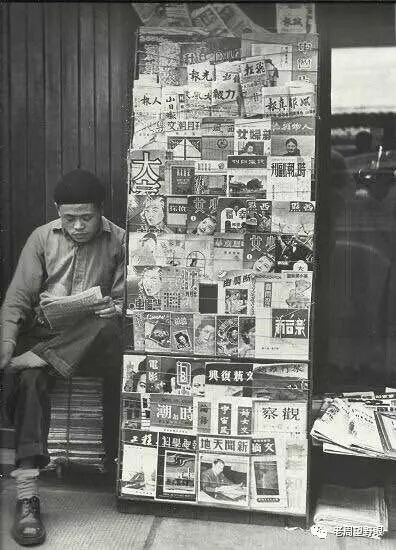 书摊主人悠闲地读报
