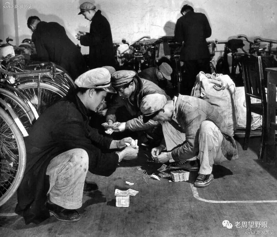 蹲在地上数钞票的邮递员