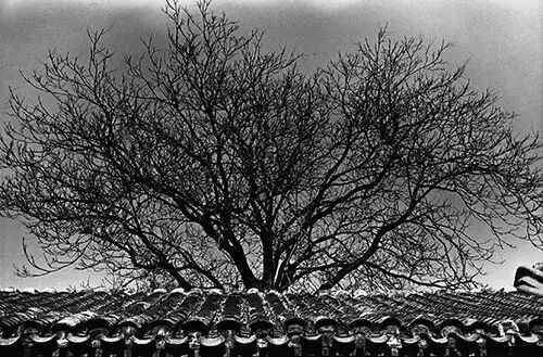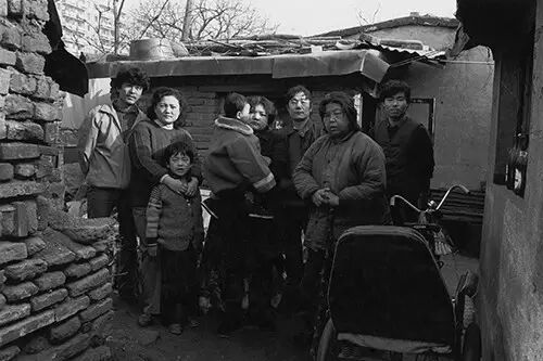自序“百花深处的故事”,一幅幅沧桑沉郁空无一人的胡同黑白照片,以及最后一张杂院中老少三代八口,肃穆以对眼望镜头的照片,是作者藉由联贯的图像语言,对北京历史进程的深刻表态。画册突破当时集体趋同的风光摄影、人物摄影的题材局限,深入直接地呈现北京平民的生存真实,隐喻“89风波”后的社会心境,成为八十年代的理想主义破灭后,揭示批判现实的摄影先锋之作。