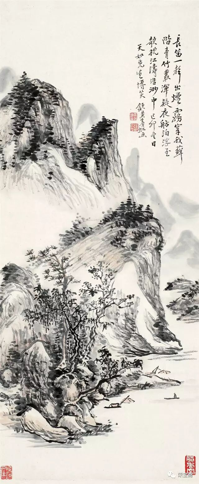 张大千《悬崖飞瀑》以282万的高价成功易主。《深山幽居图》画面之上绘群山簇拥,山底屋舍横斜。万仞深涧,飞瀑奔流而下,仰观此画似可感觉山水清气扑面而来。泼墨流动之中又时见浓淡变化爽利的线条,厚实苍润的苔点,令人在一片朦胧中顿觉清新,有如禅画山水般的耐人寻味。