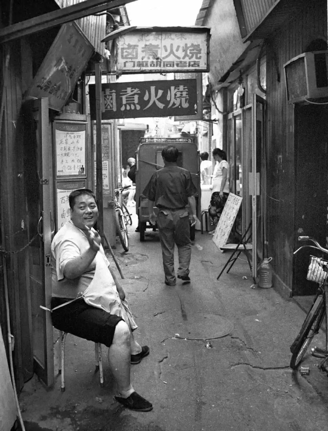 爆肚冯的冯四爷,我有一次路过,他在门口正和街坊侃呢,我咔嚓给拍一张片子。这些东西十年前你拍没什么,十年后拿出来非常恐怖,十年一晃就过去了,再看到那张照片,一拍脑门:“哎呦,和我聊天那哥们儿,没了。”