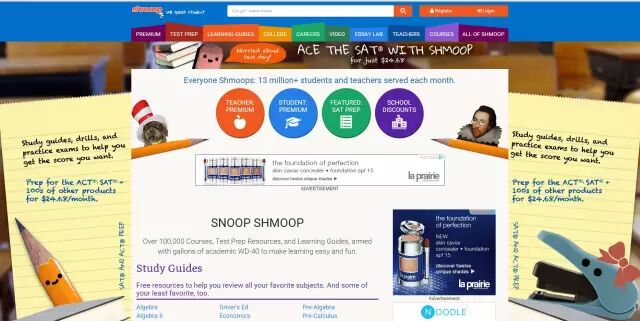 About.com大家很熟了吧,旗下的Education频道几乎是美国每个在家自学的家庭的必备网站之一。网上上提供了每个年级的课程、课后作业、练习册,所有学科都有!每个学科的分类非常细致。比如文学类里关于莎翁作品的课程,科学类里关于化学部分的课程,等等。