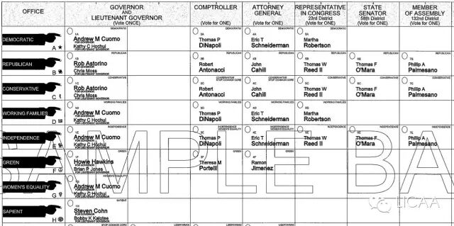 编 者按:11月3日是个什么日子?是纽约州政府以及地方政府一年一度的选举日,距离本文发出只剩下一周的时间。这一周时间,你可以准备万圣节装扮、收拾落 叶,也可以准备并完成今年最重要的一次公民投票。LICAA一向积极呼吁公民参政,眼下就是一个现实的机会。在这一天,公民前往投票站,去决定所住区域民 选官员的去留。我们的决定,将实实在在地影响未来的生活。关于投票这件事,可能您已经轻车熟路,可能您正跃跃欲试,也有可能您根本不关心。(你说什么!你 还没见过选票!这里可是美国啊!)无论如何,本文致力于为您扫除障碍,让美国公共生活中最重要的事情——“投票”,变得简单、清楚、明白,让正确填写的选 票顺利地进入票箱。概念一:“这是什么选举?我投川普(Trump),或者希拉里(Hillary)”
