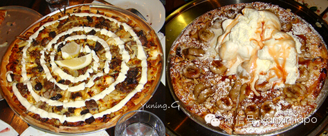 左边的是希腊羊肉的,右边的是甜点——香蕉核桃焦糖批萨+冰激凌,诱人吧??