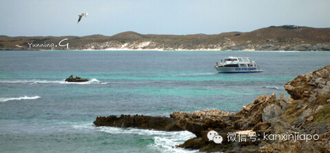 Rottnest Island是——一个远离喧嚣,风景绝美的小岛。从Perth和Fremantle都有船可以直达。如果从FREMANTLE出发,大约只要半个小时左右的航程。岛上的海景非常非常漂亮——要不是旅店都比较返璞归真,也没有什么吃正餐的地方,我真是觉得在这里渡蜜月也不太错。内陆则是另外的景象——满地乱蹦的小袋鼠,盐水湖和野鸭子,以及蔓延在海滩上不知名的红色植物,让人留恋不想返。上一次我就不止一次的说我要再来,要再来。可是再来了,天公却一点没给面儿,一整天的淫雨霏霏阿。